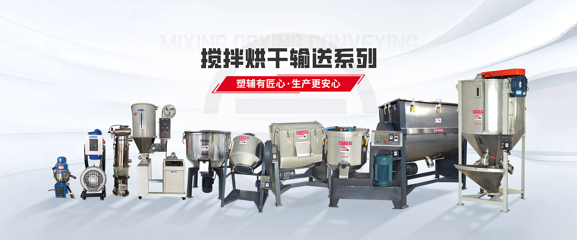 塑料干燥機與混合干燥機在功能、結構及應用場景上差異顯著。塑料干燥機以單一干燥為核心,專注于去除塑料物料中的水分,像熱風干燥機通過熱風循環穿透 PP、PE 等粒料帶走水分,除濕干燥機則借助分子篩等系統處理 PA、PC 等吸濕性強的工程塑料,確保物料干燥度滿足注塑、擠出等加工要求,但其過程中物料基本不混合?;旌细稍餀C則集混合與干燥于一體,在均勻攪拌多種物料的同時完成脫水。例如螺帶式混合干燥機通過 U 型槽內的螺帶推動物料上下翻動,夾套加熱配合抽風排濕,適合色母粒與主料、碳酸鈣等助劑的同步處理;犁刀式機型則以高速攪拌破碎結塊物料,混合均勻度可達 95% 以上,特別適用于改性塑料配方調試等需要多組分均勻混合的場景。從結構看,塑料干燥機多為料斗搭配加熱、送風系統,物料靜止或簡單翻動,如真空干燥機通過負壓降低水分沸點,適合熱敏性塑料;混合干燥機則必須配備攪拌裝置,如雙錐回轉干燥機依靠筒體旋轉使物料翻滾,同時通過筒壁加熱和真空系統實現雙重功能,其攪拌強度直接影響混合與干燥效率。性能上,塑料干燥機干燥時間通常 1 - 4 小時,能耗集中在加熱與送風,溫度控制精度 ±5℃;混合干燥機因需兼顧攪拌,干燥時間略長至 2 - 6 小時,但綜合工序效率更高,能耗隨攪拌功率增加,溫度控制需考慮物料剪切熱,精度達 ±3℃。選型時,若干燥與混合分步進行、物料單一,選塑料干燥機;若需同步處理多組分物料(如再生料與助劑混合),或追求設備集成化,混合干燥機更合適。維護上,前者側重加熱元件與風機,后者需關注攪拌軸密封、槳葉磨損及軸承潤滑,確?;旌暇扰c設備壽命。